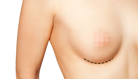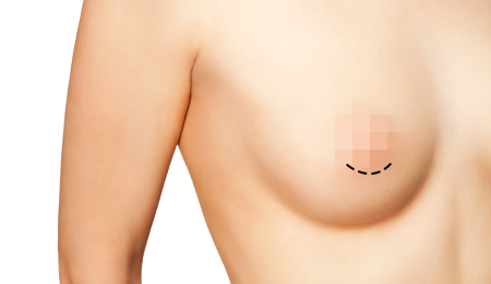 유방밑 주름을 따라 3.5cm~4cm 정도 절개하는 방법으로 시야 확보가 좋은 장점이 있습니다.