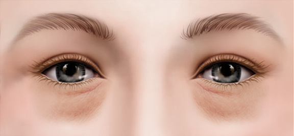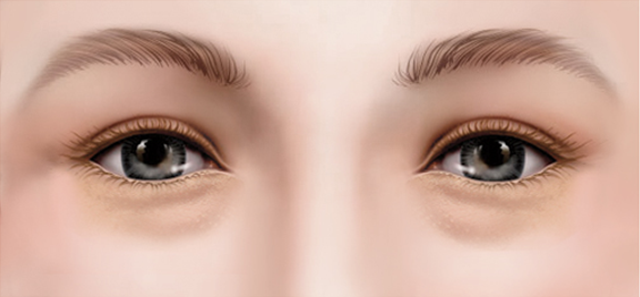 눈밑의 지방량이 부족하여 눈동자와 눈밑뼈 사이가 푹 꺼져보이고 눈물고랑이 부각되어 보이는 경우